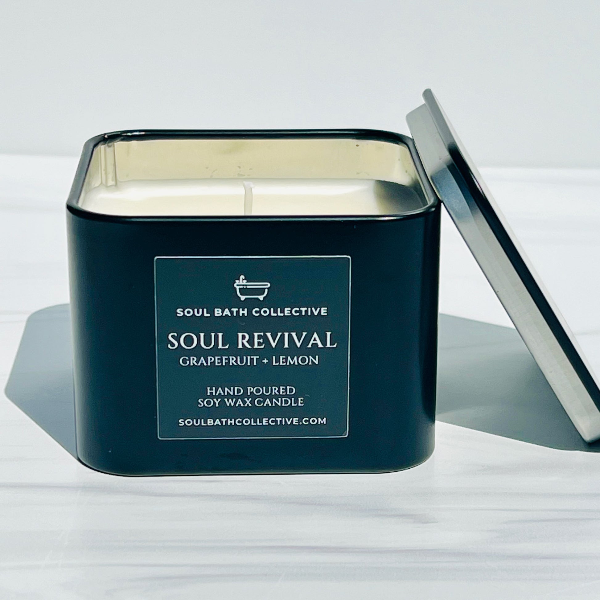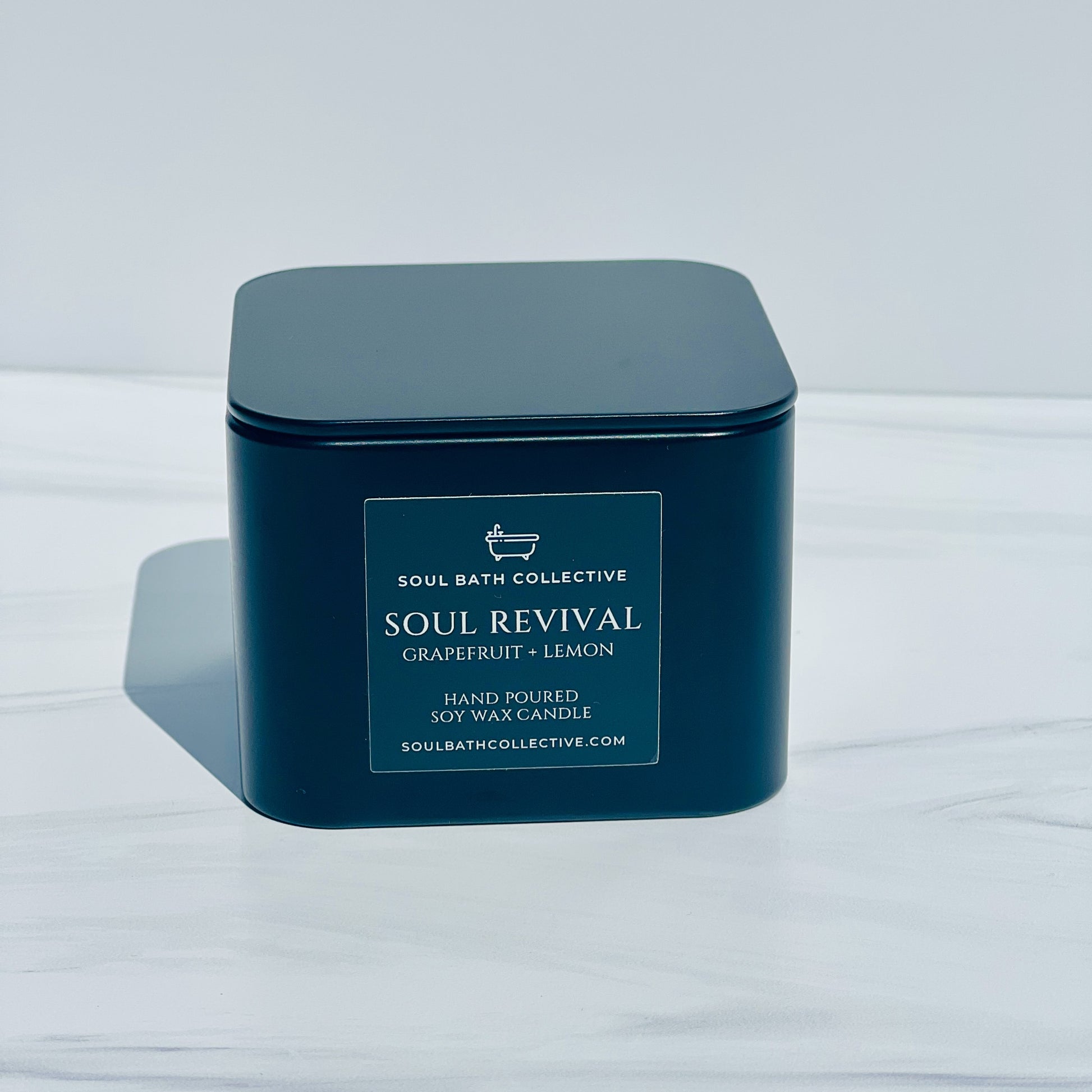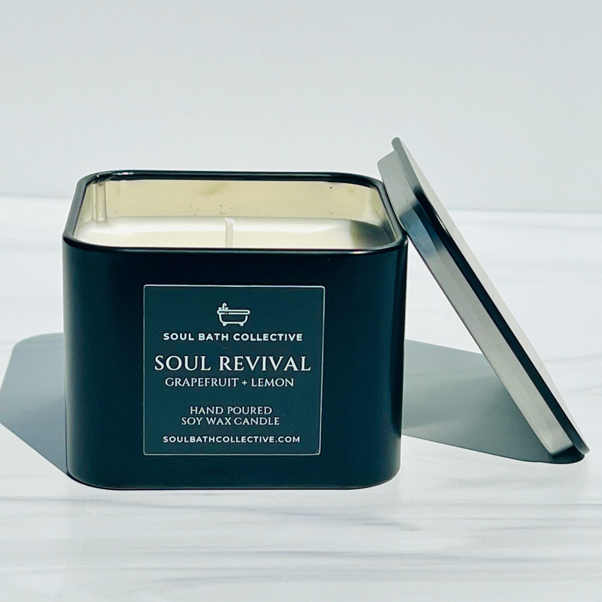 Soul Revival Soy Wax Candle, Citrus Scent, Clean Burning and Eco-Friendly, Black Tin, 8 oz